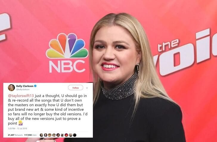 The 37-year-old singer offered some advice to her fellow hitmaker through Twitter. In the tweet, Clarkson told Swift to re-record the songs she didn't own the masters to.
