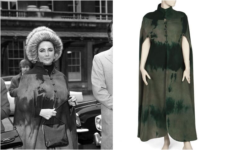 The green wool felt cape that Taylor wore during a visit to Buckingham Palace will also be auctioned off.