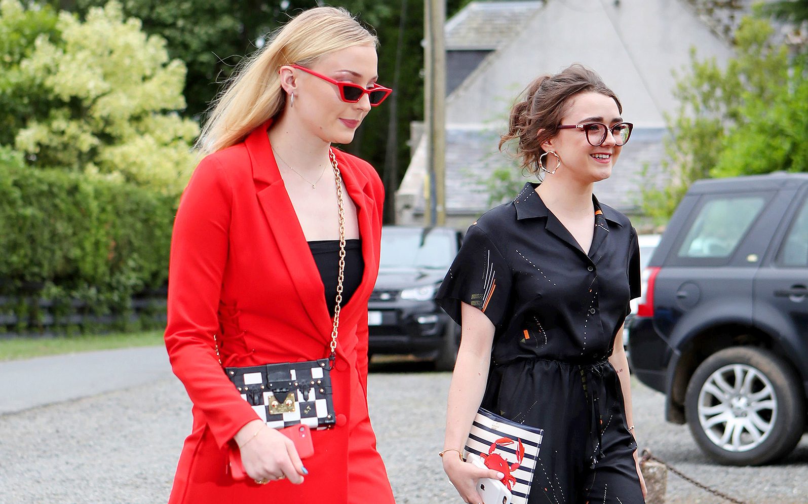 Sophie Turner and Maisie Williams spotted arriving at the wedding venue