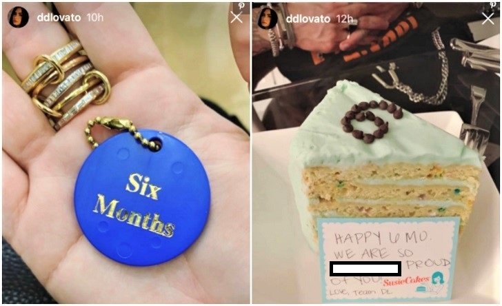 The Instagram stories Lovato posted celebrating her six months of sobriety.