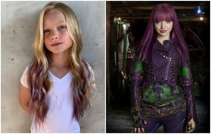 The dye job featured purple and pink tones concentrated on the ends of Maxi's her giving it a dip dye, ombre effect. Apparently, the young girl took inspiration from 'Mal' a character played by the actress Dove Cameron on the popular television film series 'Descendants'.