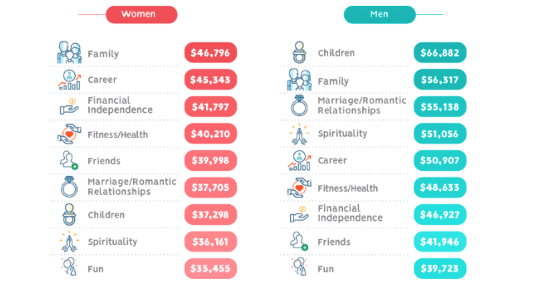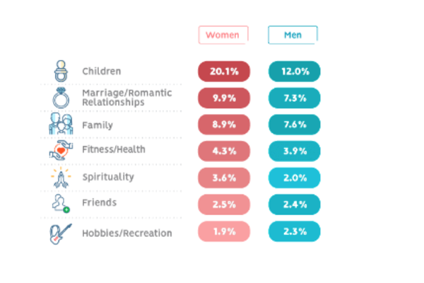 Due to the gender salary gap, the survey was more correlated to men than to women. According to the survey, males who said that the rank their children first, earn $15,975 more than those who said they rank their job first.