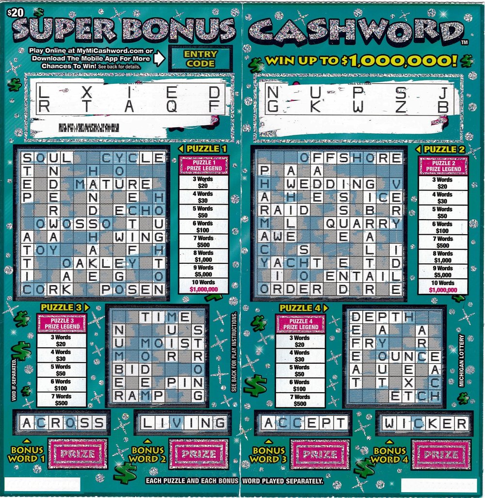The Michigan woman won $1 million with Super Bonus Cashword instant game