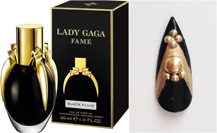The nail in question is a black and gold piece which the singer wore as part of a set during a launch event. Designed by nail artist Aya Fukuda, the nail set's look was inspired by the perfume bottle of the singer's Fame perfume.