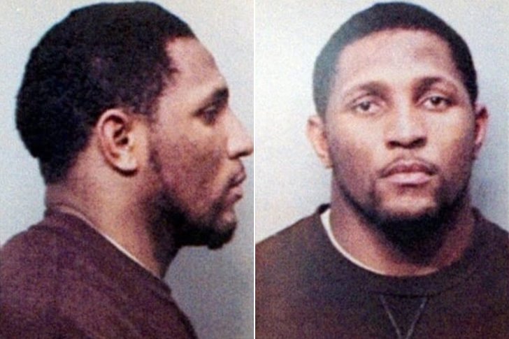 This is the mugshot of former NFL player and Baltimore Ravens’ middle linebacker Ray Lewis. In 2000, after a Super Bowl party in Atlanta, a fight stirred up between some of Ray Lewis' friends, and a bunch of people. The fight resulted in two people getting stabbed and eventually dying, Richard Lollar and Jacinth Baker. Lewis along with two of his friends were charged for the murder and aggravated assault. During the trial, it was revealed that the clothes that Lewis was wearing the night of the crime were never found. Lewis was sentenced to 12-months probation, a ban from booze and substances, and a $250K fine. He retired in 2013.