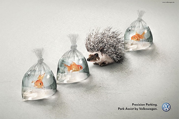 We would’ve never thought that a porcupine could be used to represent a Volkswagen. However, the spike structure of a porcupine’s back is a perfect example of the new precision parking technology of the brand. Visually, this is an amazing way to make a point without even showing their product!