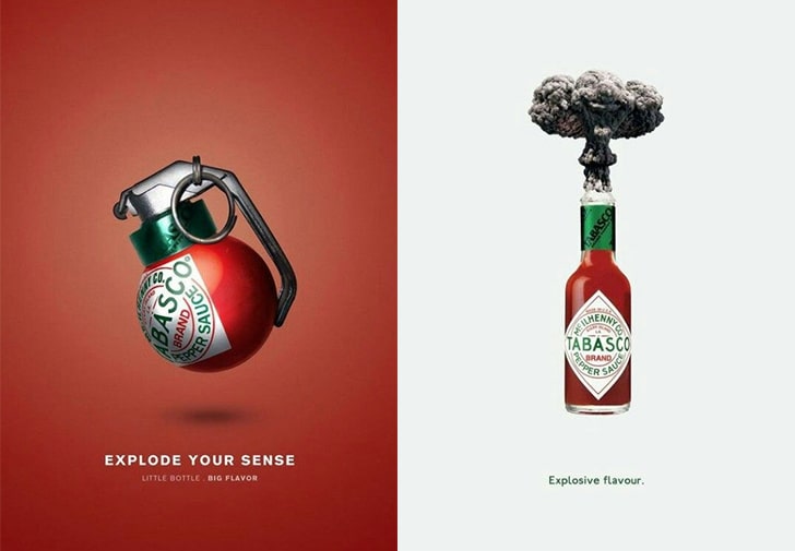 We believe them when they say that their sauce is going to pack an explosion! Furthermore, the emphasis on the fact that it comes in a small bottle is a great way to highlight the traditional tiny Tabasco packaging. We’re not sure if we want that grenade to literally explode in our mouths, though.