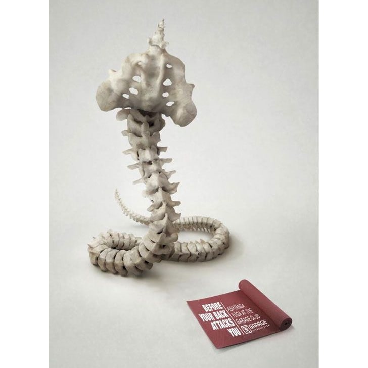 Back pain can be a terrible thing, and this ad shows us our spinal column as if it's a wild snake that’s ready to strike. While we’re positive that our column is not the enemy, it’s also true that not taking care of it can land us at the hospital, getting ready for surgery. This is why this ad is so relatable.