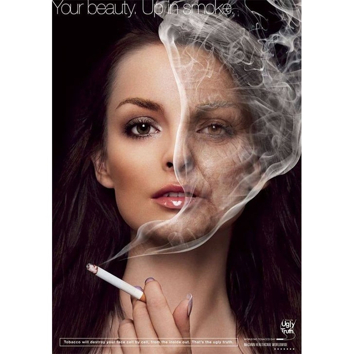 If photos of lungs ravaged by cancer on cigarette packages are not enough, then advertisers will use our vanity to make us see reason. To be honest, we think this can work. After all, no one can see our lungs! However, highlighting how our beauty would be affected does make an impact.