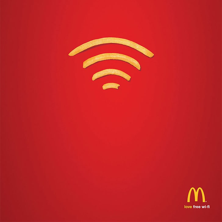 One such example of McDonald’s very compelling work is this add. It’s simple, it’s direct, and it sends the message they want to send. They have Wi-Fi –which is a very important thing these days- but never forget, they have fries and everything else that can come with it.