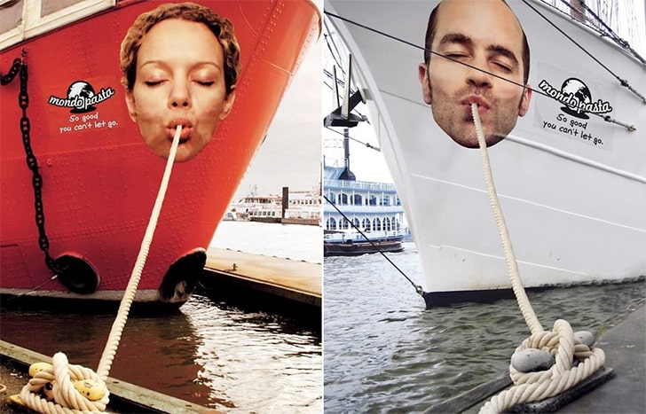 As seen in this listing, sometimes the best way to create a unique and eye-catching advertisement is to incorporate things from outside the ad. Such is the case with this one, which took creativity to an entirely different level. Mondo Pasta manages to grab our attention and keeps it with such a distinct advertisement.