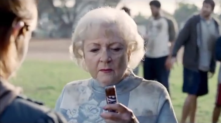 Betty White is one of the most beloved actresses. She can play the doting grandma or the incorrect elderly woman like no one can. However, this Snickers ad shows her being tackled into the mud! Should we be outraged at this attack on elderly people? Nothing can be further from the truth.