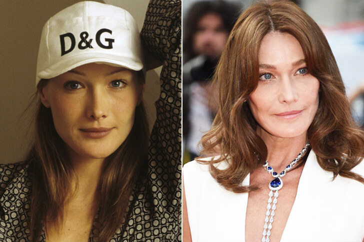 Carla Bruni nait à Turin en Italie et arrive en France à l’âge de 7 ans. Elle devient mannequin à 19 ans et accède au rang de top model en 1988. Elle défile et pose pour les plus grandes maisons de couture dans les années 90 : Dior, Ralph Lauren, Karl Lagerfeld, Chanel, Givenchy, Christian Lacroix pour n’en citer que quelques-uns. Elle entame ensuite une carrière musicale. Sa voix douce et discrète a un franc succès et son premier album Quelqu’un m’a dit, dont elle a aussi écrit et composé beaucoup de morceaux, se vend à 2 millions d’exemplaires. La belle a désormais 53 ans.