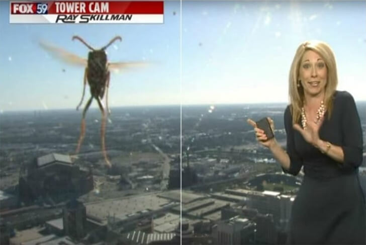 In a buzz-worthy live-TV moment, meteorologist Jennifer Ketchmark faced down an intimidating on-air partner. As she deftly illustrated the week's weather forecast, an adventurous hornet seized the spotlight, hogging the green screen lens. Audiences watched in bemusement as the gigantic, pixelated insect took over, making the weather report more of an entomology lesson!