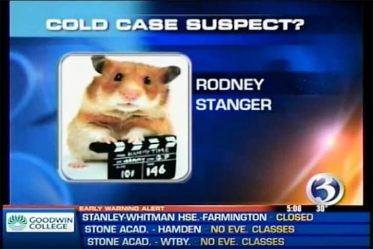 They say timing is everything in comedy, and this prime-time gaffe would certainly qualify. While deep in discussion about the grave developments in the Molly Bish case, a moment of incongruity took the nation by surprise. Instead of displaying the gruff mug of suspect Rodney Stanger, what popped up was the innocent, twitchy-nosed face of a hamster!