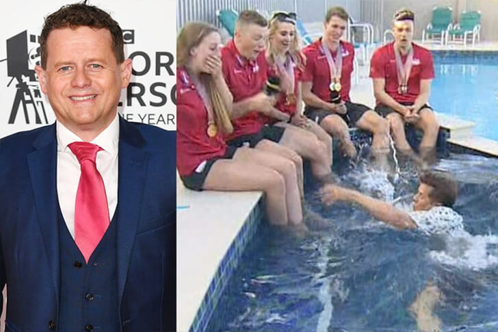 What started as a regular interview took a splashy turn when BBC's sports reporter Mike Bushell ended up in the pool while chatting with the England swimming team. In an attempt to liven up his coverage of the Commonwealth Games, Mike misjudged the pool steps and made an unscheduled dip!