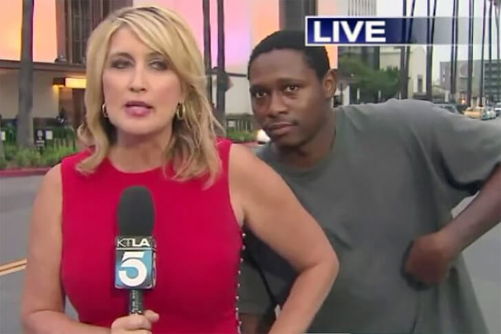 Amidst the daily hustle and bustle of Los Angeles, award-winning reporter Wendy Burch was serving up hot news when she was served a surprise. In a heart-skipping moment, a bold passerby photobombed Wendy's live shot with a spontaneous scream. Just as quick, a sigh of relief and a chuckle followed.