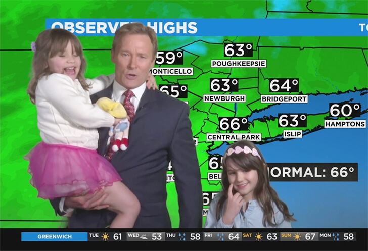 One of the most heartwarming moments on live TV happened when New York's trusted weatherman, Lonnie Quinn, was joined by two unexpected guests during his weather forecast. As Lonnie was analyzing cold fronts and high pressures, his adorable daughters, Lily and Savy, sauntered onto the screen. But instead of pushing them out of view, Lonnie incorporated them into his weather report.