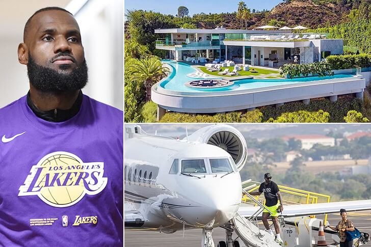 LeBron James é basquetebolista norte-americano a atualmente joga pelo Los Angeles Lakers. O jogador é considerado um dos maiores jogadores de basquetebol da história, ficando apenas atrás de Michael Jordan. King James, como também é chamado, conquistou quatro títulos da NBA, quatro prêmios de MVP da NBA e quatro prêmios de MVP de Finais da NBA. Além de tudo isso, ele é também o quarto jogador com mais assistências e o maior pontuador da história da NBA. Sua carreira profissional começou em dois mil e três, no Cleveland Cavaliers, e também tem passagem pelo clube Miami Heat. Sua fortuna está avaliada em US$500 milhões.