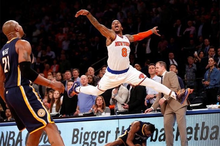 Basketball und Ballett mögen auf den ersten Blick wenig gemeinsam haben, doch dieses Foto von J.R. Smith von den New York Knicks bringt beide Welten zusammen. In diesem Augenblick wirkt es, als würde Smith eine Ballettfigur machen und anmutig durch die Luft gleiten.