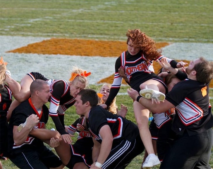 Professionelle Cheerleader machen selten Fehler, insbesondere bei Elementen wie dem Hochwerfen eines Teammitglieds. Ihre Routine und Ausführung sind oft nahezu perfekt. Leider kann das Gleiche nicht über diese Anfänger gesagt werden. Sie sind ein Beispiel dafür, dass wenn du das Teamtraining vernachlässigst, das Unfallrisiko dramatisch steigt.