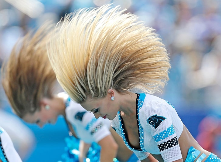 Unter den vielen tausend Fotos, die Reporter bei NFL-Spielen aufnehmen, gibt es immer einige, die besonders herausstechen. Dieses Bild ist eines der besten Cheerleader-Fotos der Saison 2016. Die Cheerleaderin, offensichtlich ein Mitglied der Carolina Panthers, wurde im perfekten Moment erwischt, und ihre Haare sehen aus wie die Mähne eines Löwen.