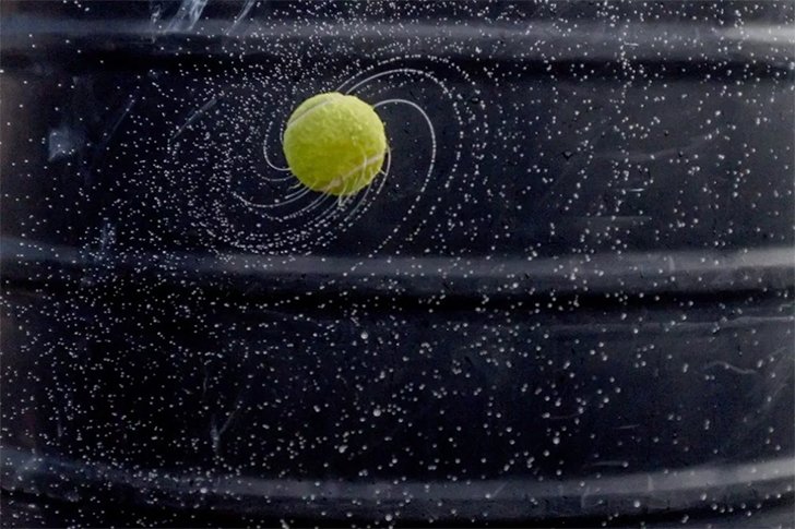 Was aussieht wie ein Blick in eine weit entfernte Galaxie, entpuppt sich bei näherer Betrachtung einfach als ein nasser Tennisball, der gerade durch die Luft geschleudert wird. Wenn ein nasser Ball im richtigen Winkel und im perfekten Licht durch die Luft fliegt, entsteht diese optische Täuschung eines "galaktischen Zentrums".