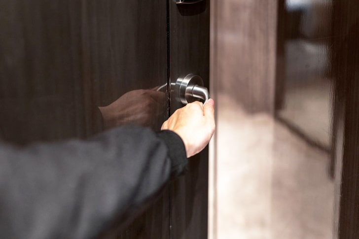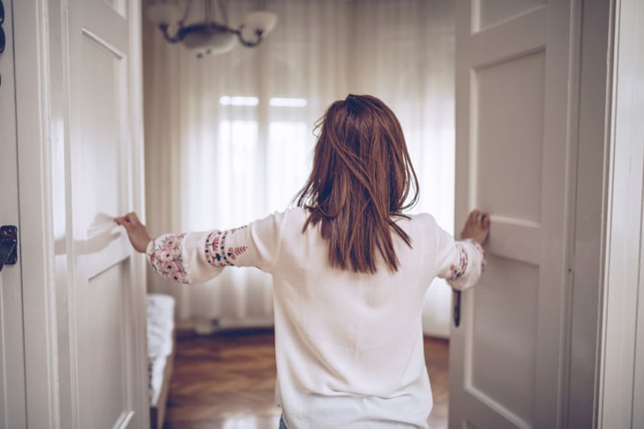 As soon Tracy heard footsteps approaching, she quickly left the room. She ran towards the hallway, trying to get as far away from the bedroom as possible.